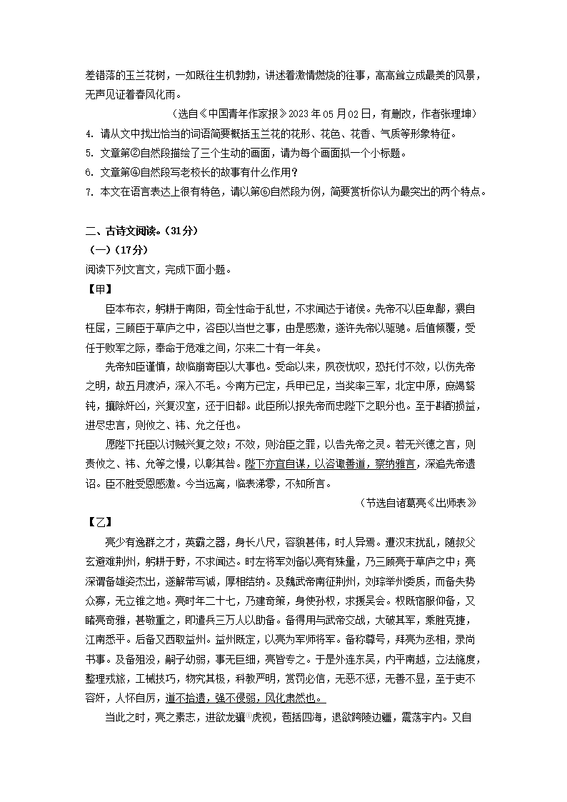 2023年四川泸州中考语文真题及答案(Word版)06-16