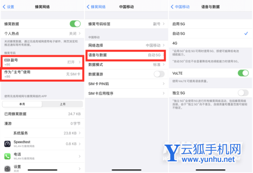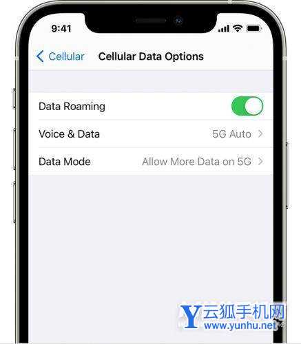 2.转到设置-蜂窝网络-蜂窝数据选项。如果您看到此屏幕,则表明您的设备已激活5G。如果您没有看到此屏幕,请与运营商联系以确认您的计划支持 5G。