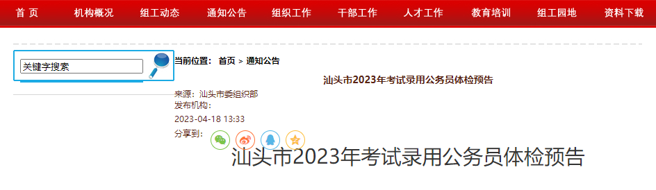 原文标题:汕头市2023年考试录用公务员体检预告