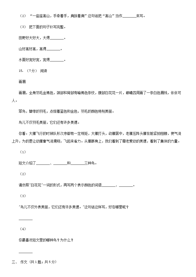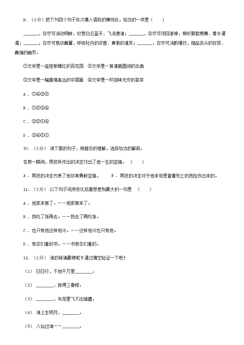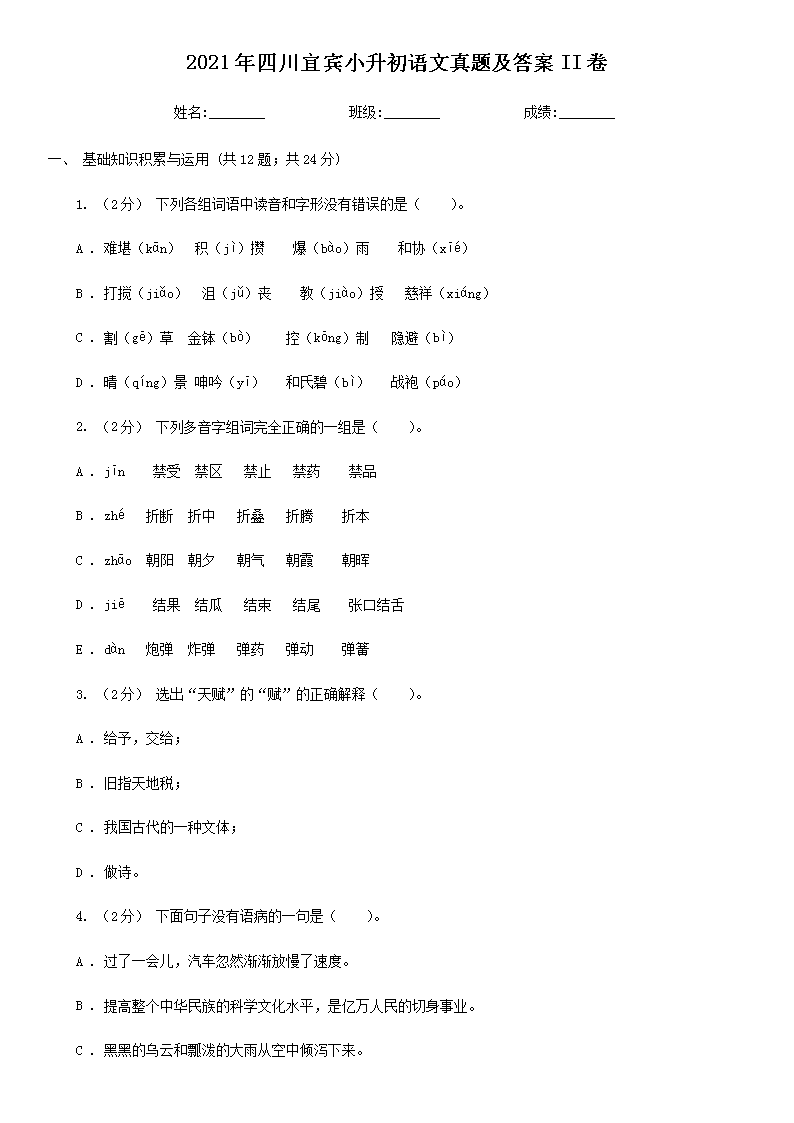 2021年四川宜宾小升初语文真题及答案II卷(Word版)08-30