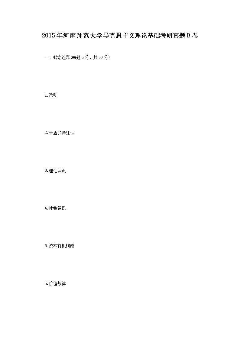2015年河南师范大学马克思主义理论基础考研真题B卷(Word版)05-29