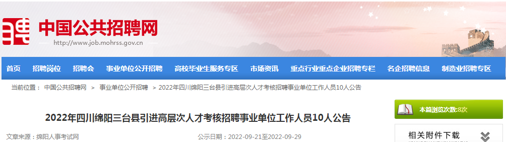 原文标题:2022年四川绵阳三台县引进高层次人才考核招聘事业单位工作人员10人公告