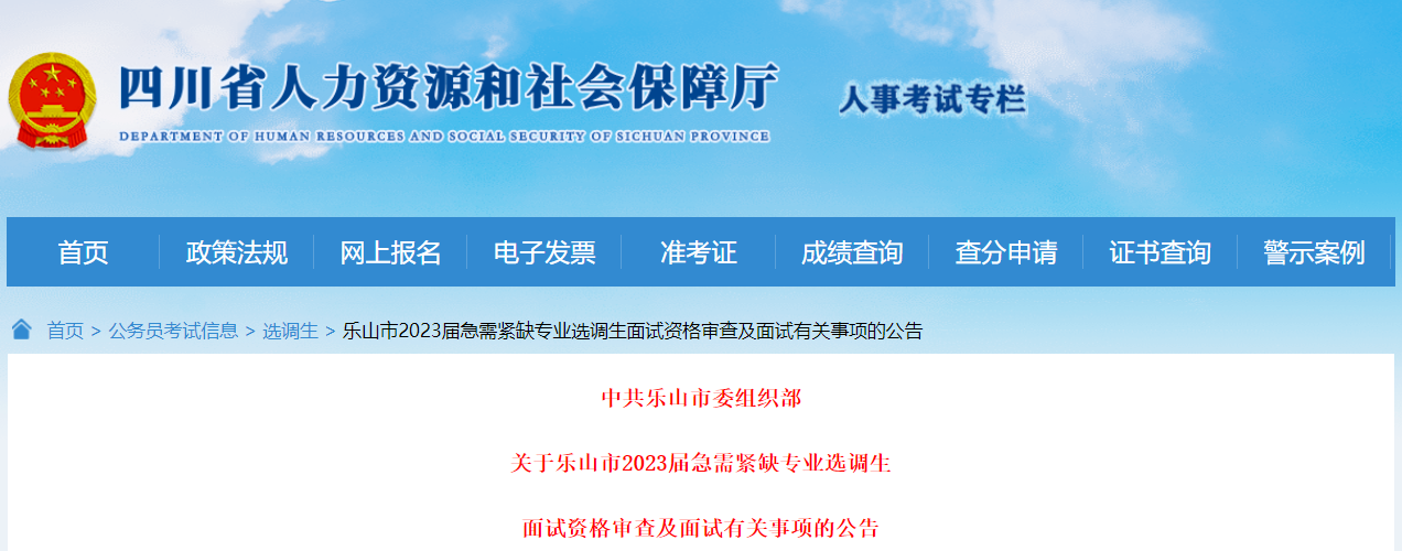 原文标题:乐山市2023届急需紧缺专业选调生面试资格审查及面试有关事项的公告