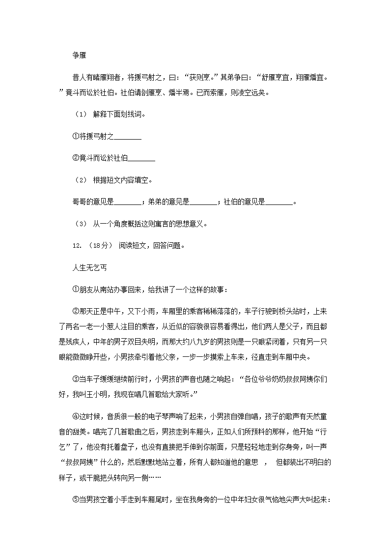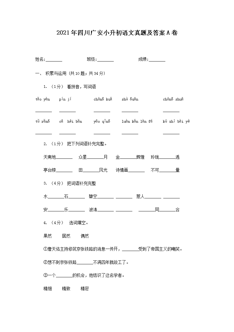 2021年四川广安小升初语文真题及答案A卷(Word版)08-31