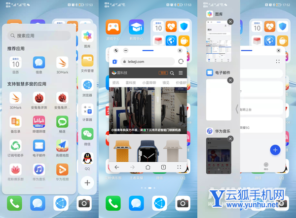 我们可以把目光望向多个手机系统都在打磨的功能,比如花样越发繁多、细致的小窗口,不仅支持几乎所有应用,还提供了多种退出或切换分屏途径。鸿蒙2.0还是为数不多允许同时打开多个小窗应用的系统,可在独立的多任务界面快速切换。