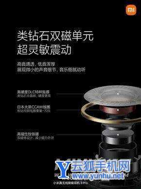 小米真无线降噪耳机3 Pro搭载前愧后愧通话三重麦克风,相互配合下,能够精准分离环境噪声和语音,让通话更清晰通透。耳机内置钕铁硼双磁体,搭配DLC高硬度振膜动圈灵敏度大幅提升,即使是微小的声音细节也能精准入耳。