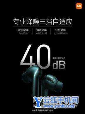 小米真无线降噪耳机3 Pro最大降噪深度可达40dB,最高可阻隔99%的外部噪音。