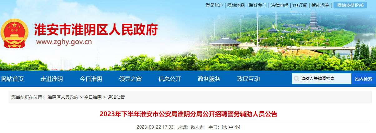 2023下半年江苏淮安市公安局淮阴分局招聘警务辅助人员公告(143名)09-26