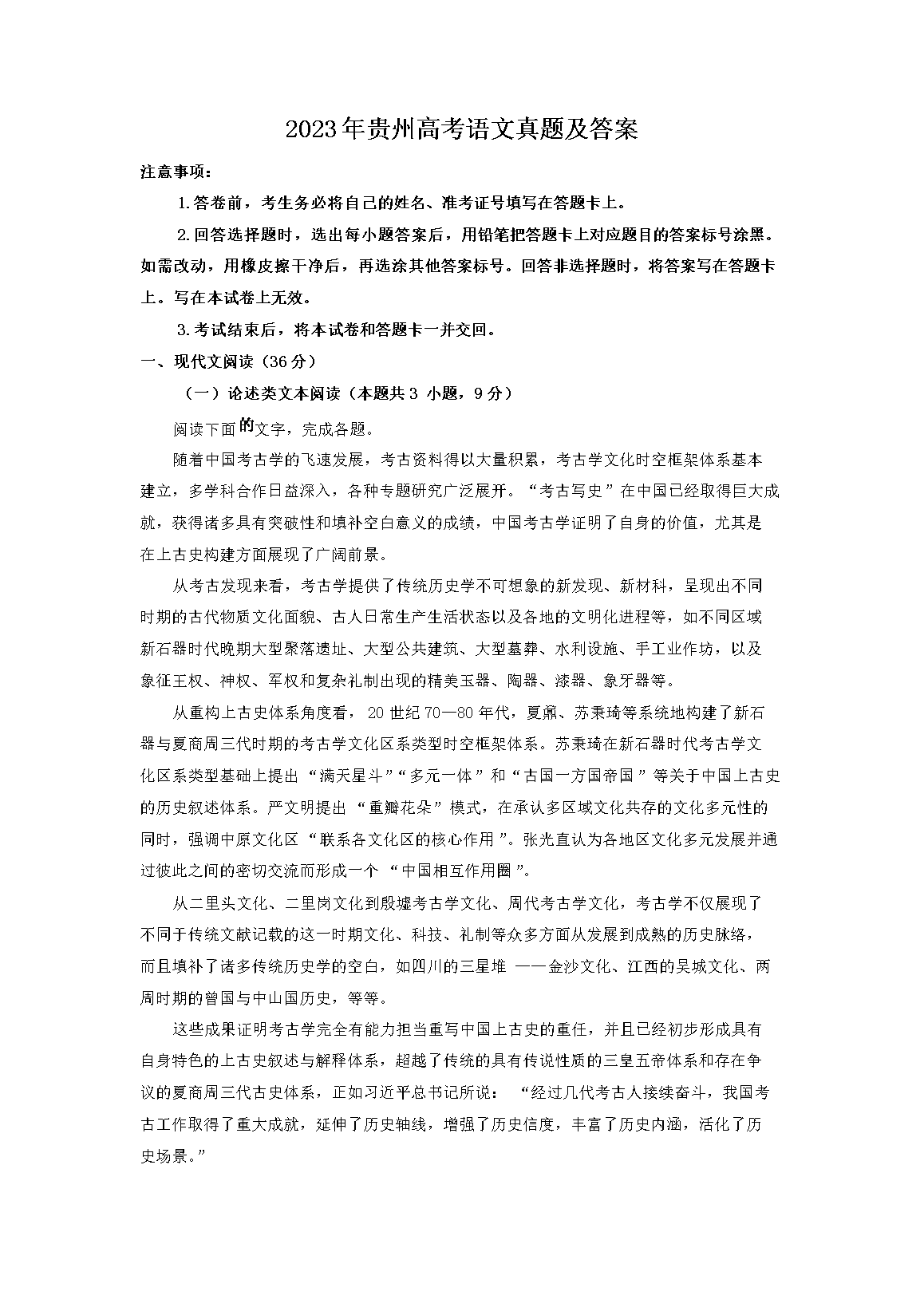 【文档预览】 文档大全网整理发布2023年贵州高考语文真题及答案(Word版),前五页预览如下: