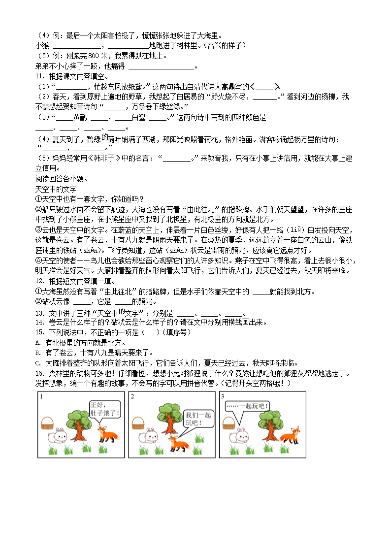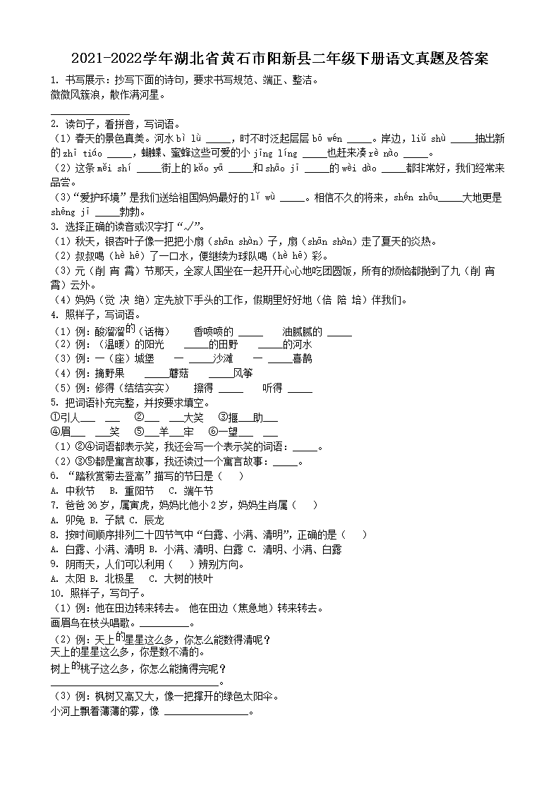 2021-2022学年湖北省黄石市阳新县二年级下册语文真题及答案(Word版)07-28