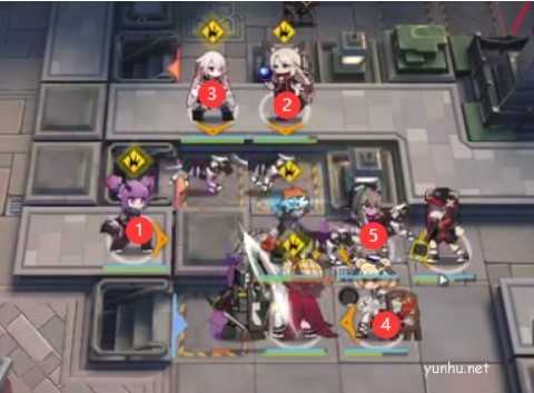 起手如下图所示,桃金娘 → 常规先锋阻挡 → 击回先锋(向上)→ 地刺