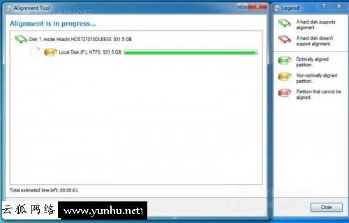 电脑重启后会跳转到DOS下进行4k对齐,一般来说硬盘中的文件越少对齐的越快,我对齐了一块使用了400g的文件的机械硬盘,大概用了近2个小时。在硬盘对齐过程中,切记!电脑千万不要断电,对齐程序不能强制停止,否则会导致硬盘损坏!