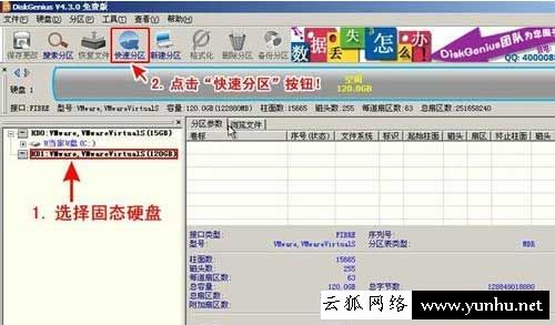 进入WIN8PE系统后,点击桌面上的DiskGenius分区工具,选择您需要4k对齐的固态硬盘,然后点击DiskGenius分区工具的【快速分区】按钮,如下图: