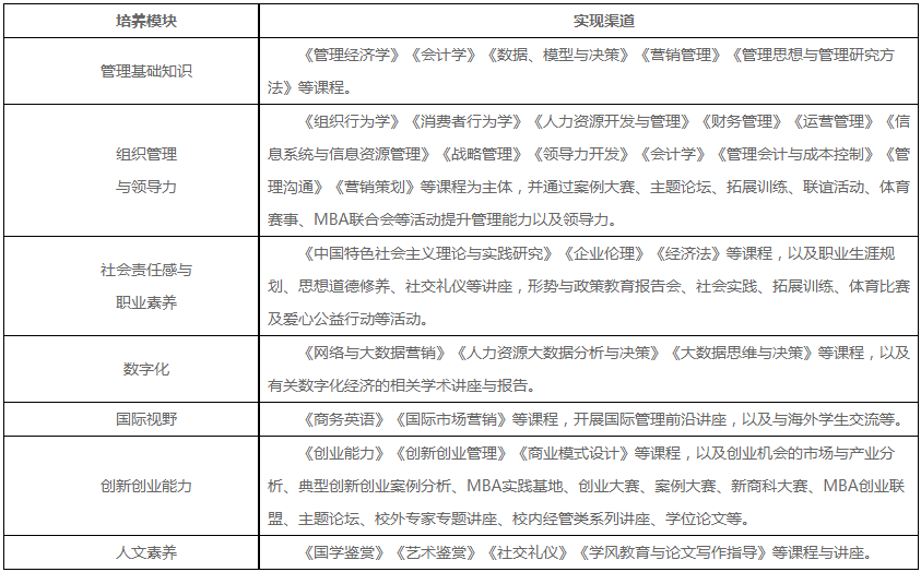 根据MBA学员的实际情况,采取集中授课或周末授课,两种方式由学员自选。总学分数不低于46学分,总学时不低于600学时。学员学习期满,修满规定的学分,成绩合格,完成科研、实践、毕业论文等规定的培养环节,颁发兰州财经大学硕士研究生毕业证书;通过学位论文答辩,达到学校学位授予标准,经校学位评定委员会审议通过后,授予工商管理硕士(MBA)专业学位。