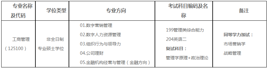 我校MBA项目2023年拟招生非全日制工商管理硕士(MBA)100人(实际招生名额以教育部2023年下达给我校的名额为准),具体专业方向及考试科目如下:
