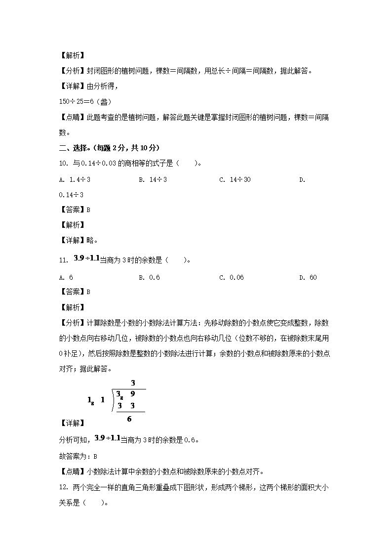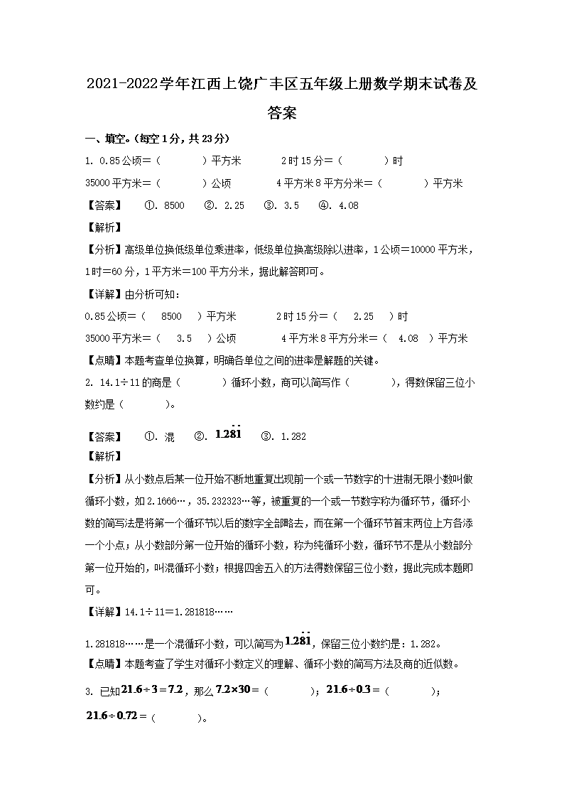 2021-2022学年江西上饶广丰区五年级上册数学期末试卷及答案(Word版)09-08