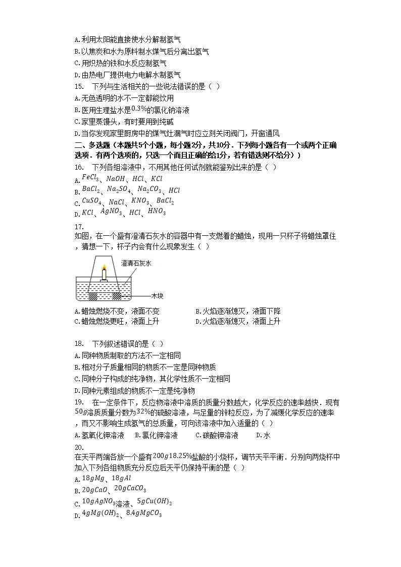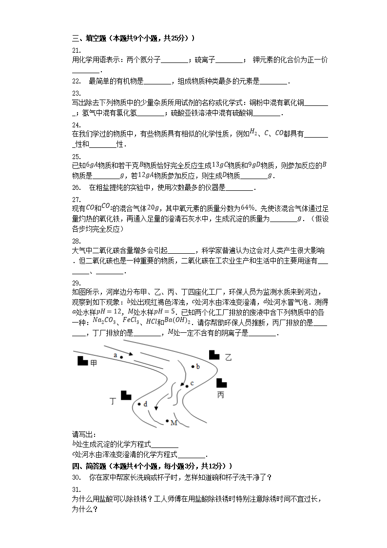 2002年黑龙江黑河市中考化学真题及答案(Word版)06-01