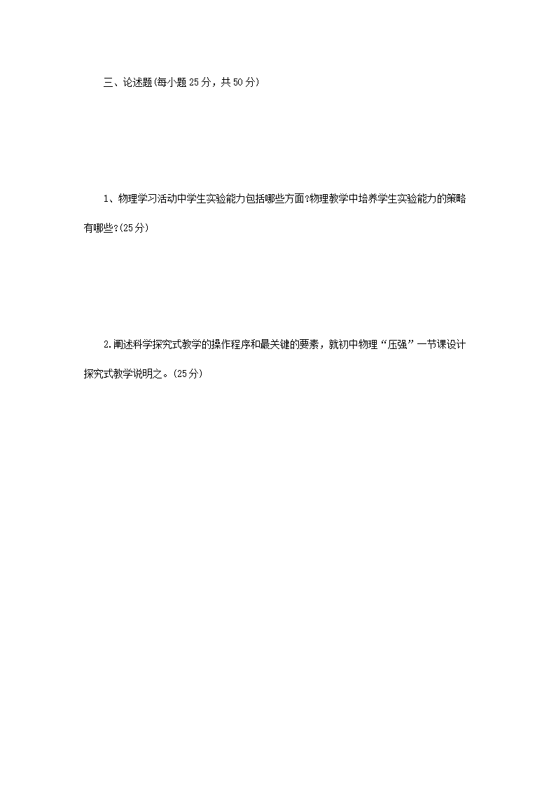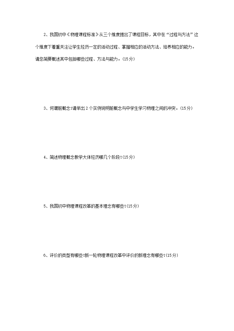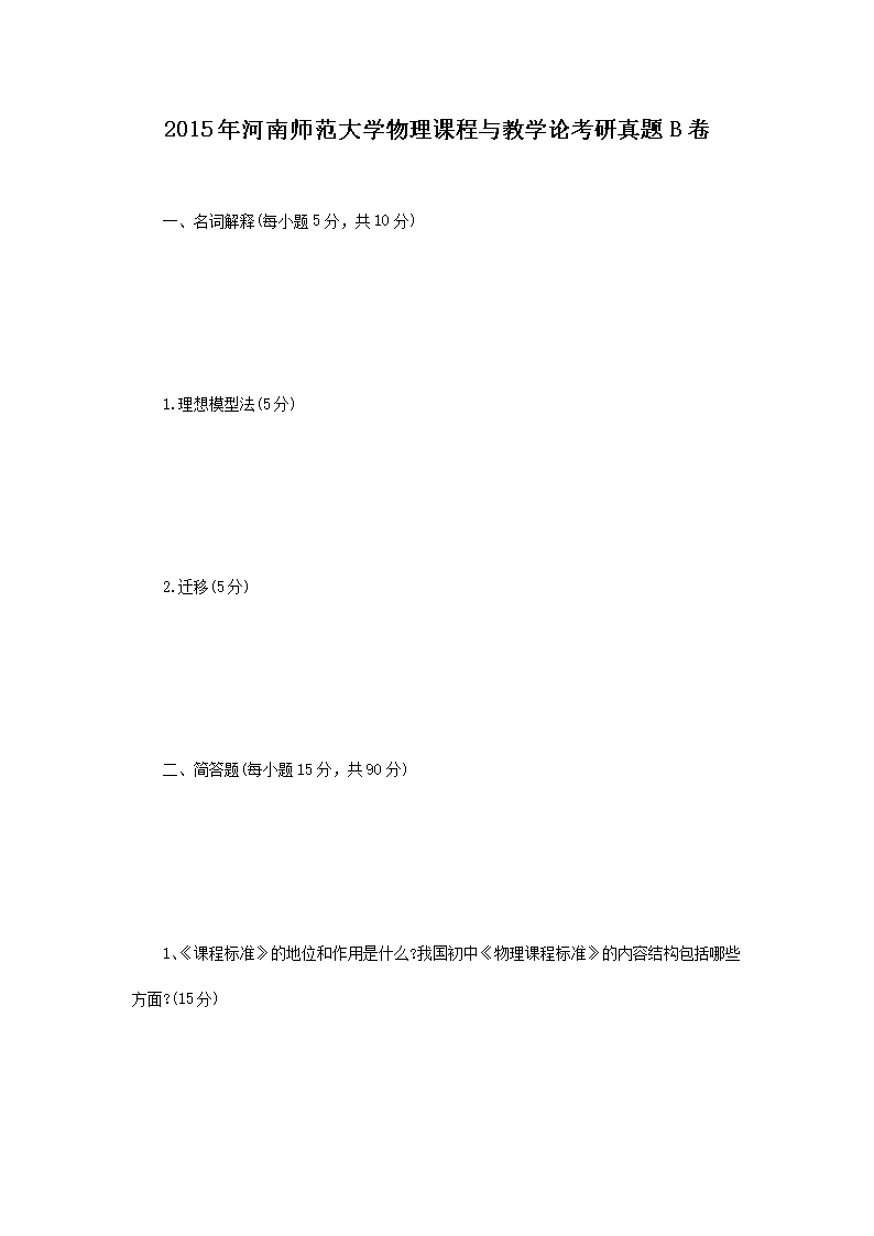 2015年河南师范大学物理课程与教学论考研真题B卷(Word版)06-03
