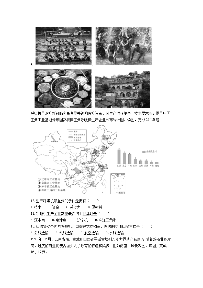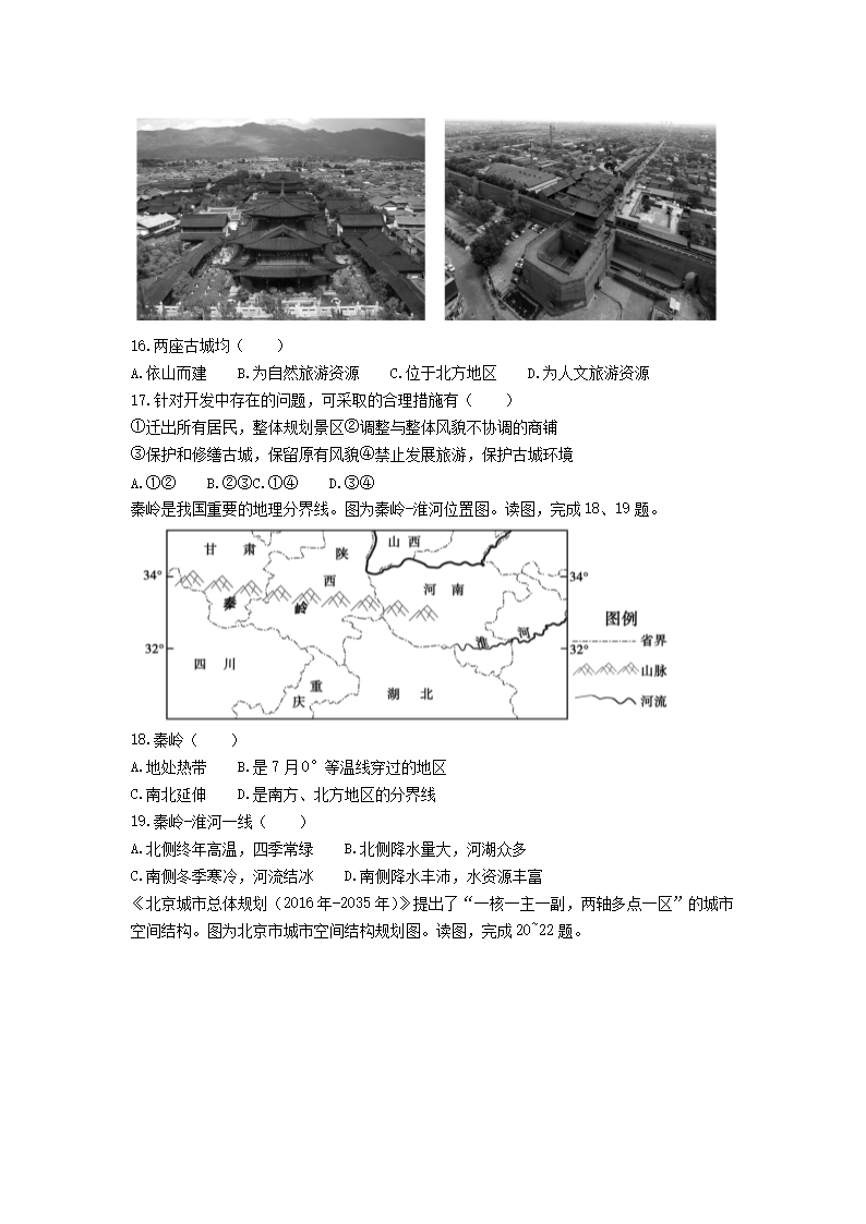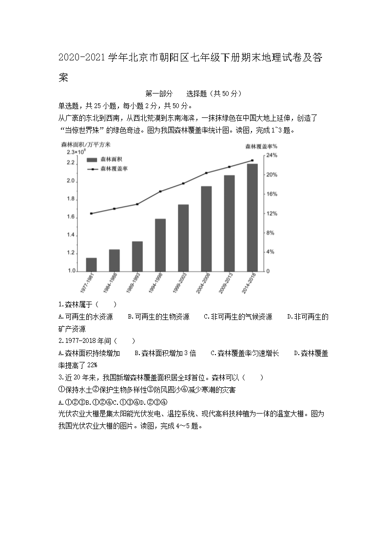 2020-2021学年北京市朝阳区七年级下册期末地理试卷及答案(Word版)07-28