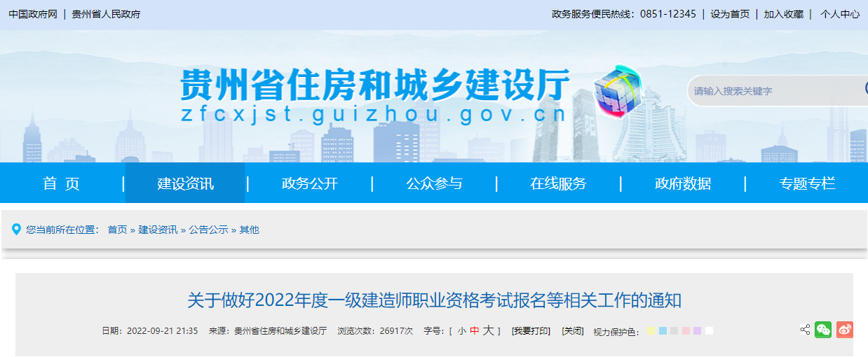 (三)有关本次考试全周期的重要信息,将通过“贵州省住房和城乡建设厅”网站及时推送,请报考人员保持关注,以免贻误。