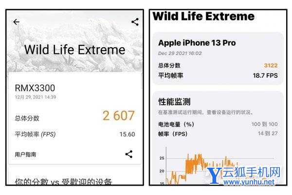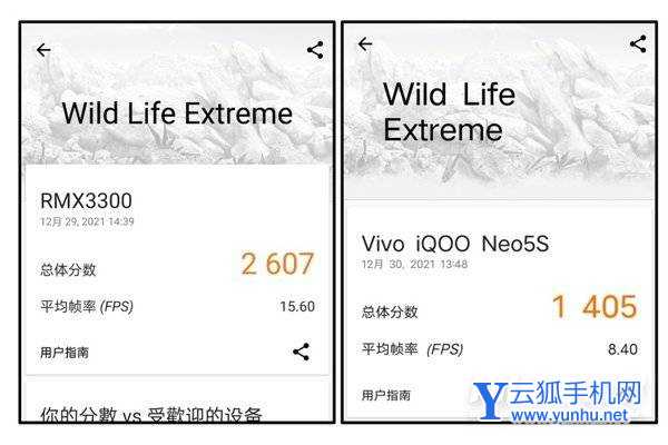在3DMark Wild Life Exterme测试环节中,realme GT2 Pro跑出了2607分,而搭载骁龙888的iQOO Neo5S仅跑出了1405分,可以明显看出骁龙8系在GPU性能上大幅度领先骁龙888。