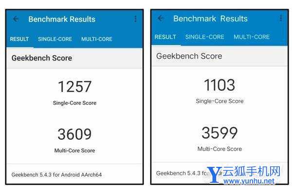 口说无凭,我们用搭载骁龙888的iQOO Neo5S来做个对比,这里我们使用GeekBench 5作为测试软件,从测试结果可以看到,骁龙888的单核分数为1103分,多核分数为3599分,而骁龙8 Gen 1的单核分数为1257分,多核分数为3609分,整体提升微乎其微,甚至可以说是下降。
