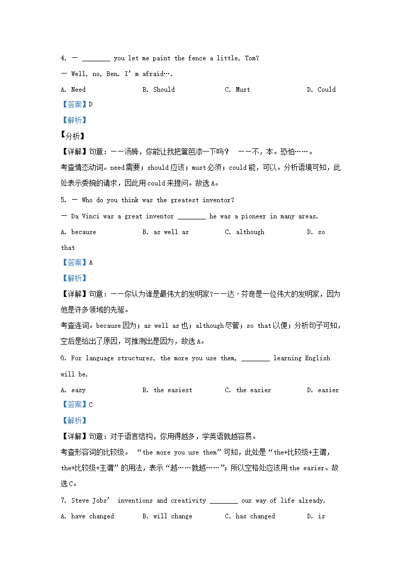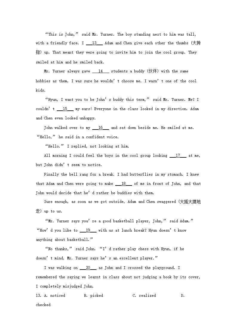2020-2021学年北京顺义区初三第一学期英语期末试卷及答案(Word版)08-11