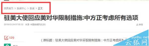 网易的内容页导航都是放置在标题的上方如下图所示: