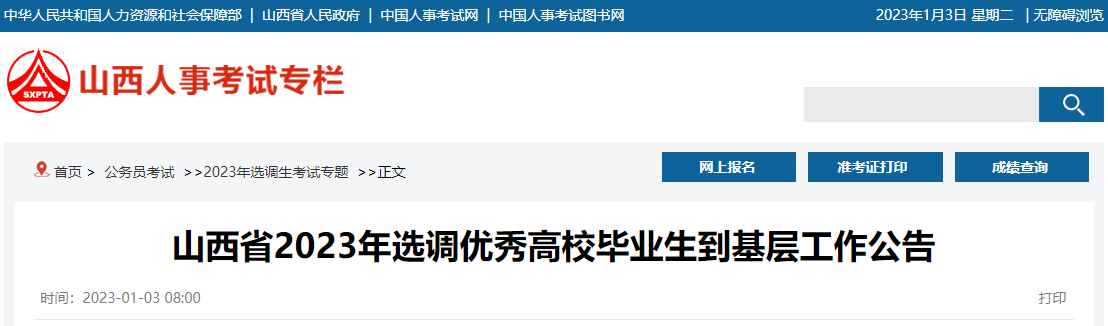 原文标题:山西省2023年选调优秀高校毕业生到基层工作公告