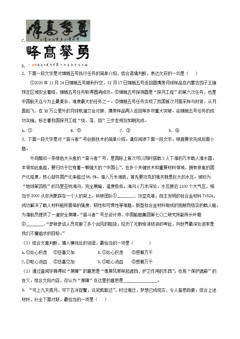【文档预览】 文档大全网整理发布2020-2021学年北京密云区初三第一学期语文期末试卷及答案(Word版),前五页预览如下: