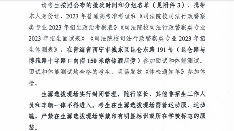 参加2023年司法普通高等院校司法行政警察类专业在青海招生生源选拔工作的更正通知07-04