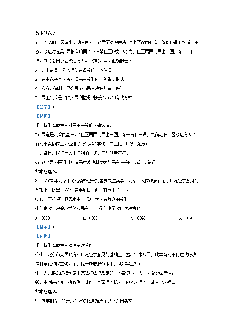 2022-2023学年北京丰台区初三第一学期道德与法治期末试卷及答案(Word版)08-02