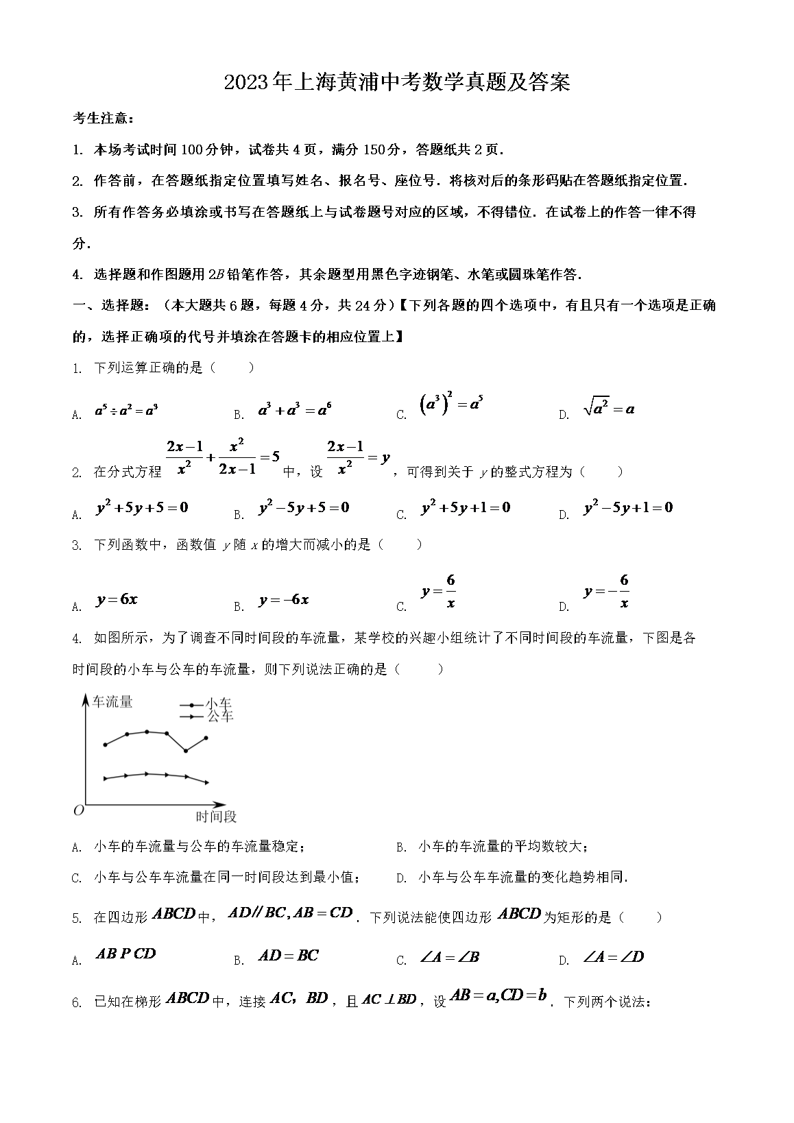 2023年上海黄浦中考数学真题及答案(Word版)06-22