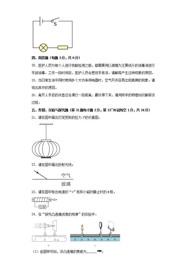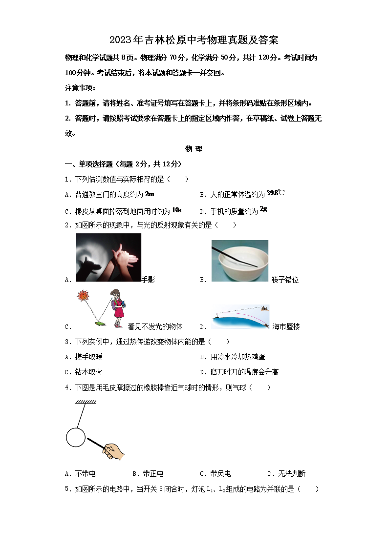 2023年吉林松原中考物理真题及答案(Word版)07-01