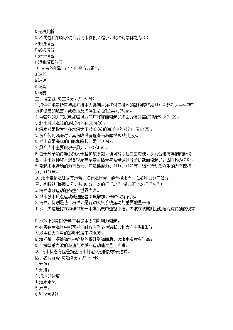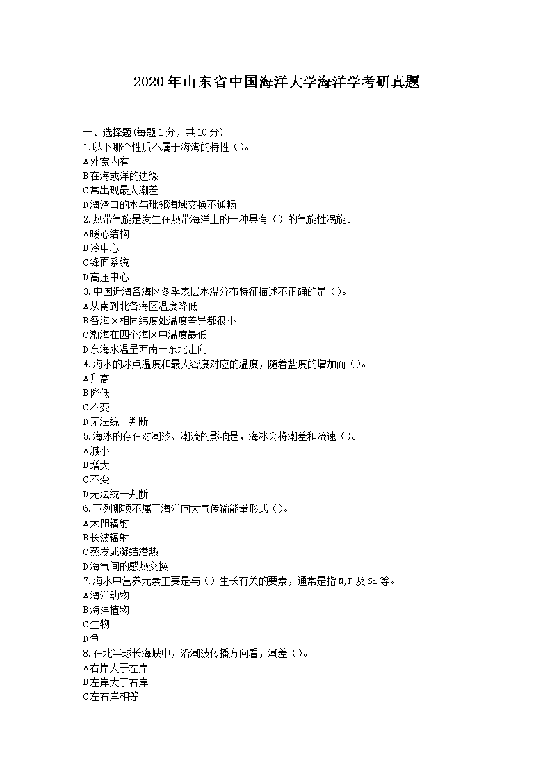 2020年山东省中国海洋大学海洋学考研真题(Word版)06-30