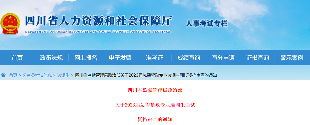 原文标题:四川省监狱管理局政治部关于2023届急需紧缺专业选调生面试资格审查的通知