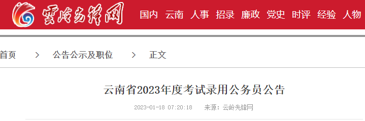 2023年云南省考公务员报名时间及报名入口【1月30日-2月3日】01-19