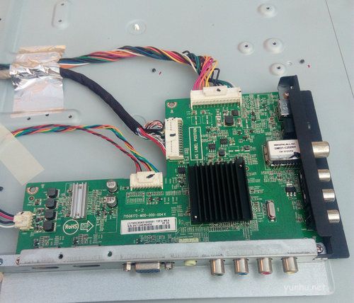 例12、 LT26810U不开机,指示灯亮 通电指示灯亮,二次开机后电视机上的指示灯不变化,初步判定故障在主板上的控制系统电路。该机的控制系统电路主要由用户存储器U14(24C32)、FLASHUl9(M25P64)和主芯片U34(MT8222)内部部分模块电路组成。控制系统电路要工作,首先其供电电压必须正常,该机信号处理电路中的用户存储器、主芯片、FLASH所需要的工作电压分别由DC-DC电路U3、U11、U7、U8提供。检查DC-DC电路的输出电压,发现DC-DC电路U7无3.3V电压输出,测量U7的④脚对地电阻,没有发现有元件击穿短路情况。检查U7外电路中的元件,发现Q9开路,更换Q9后,一切恢复正常,故障排除。