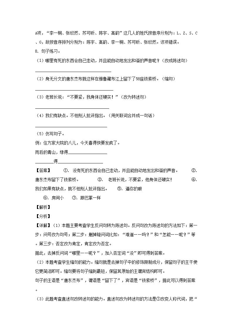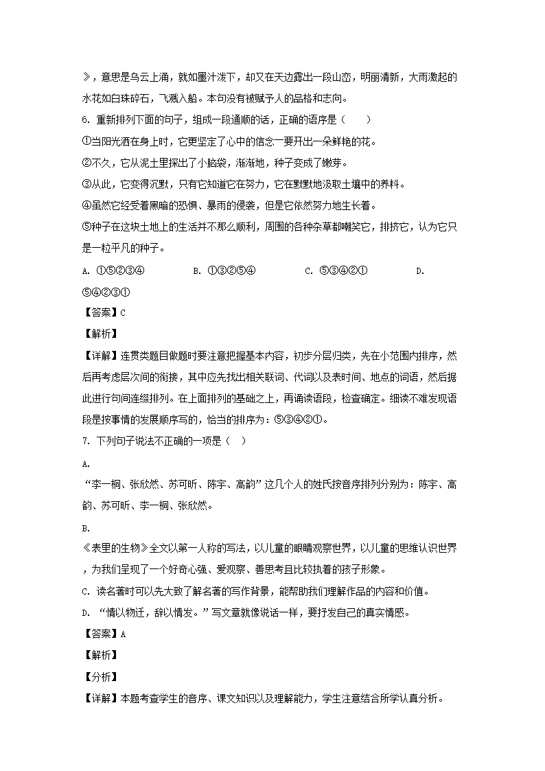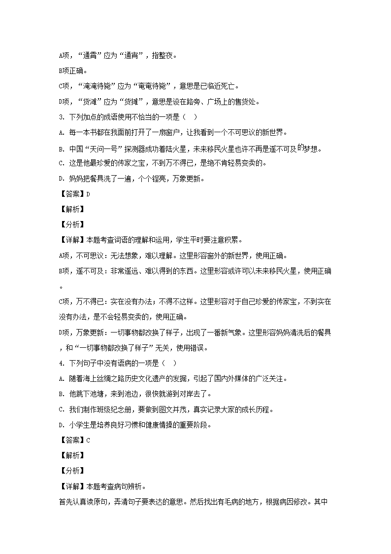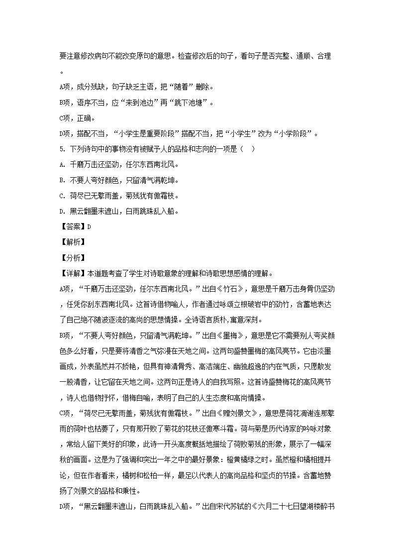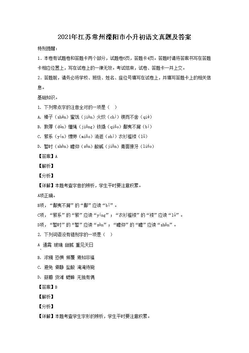 2021年江苏常州溧阳市小升初语文真题及答案(Word版)10-19