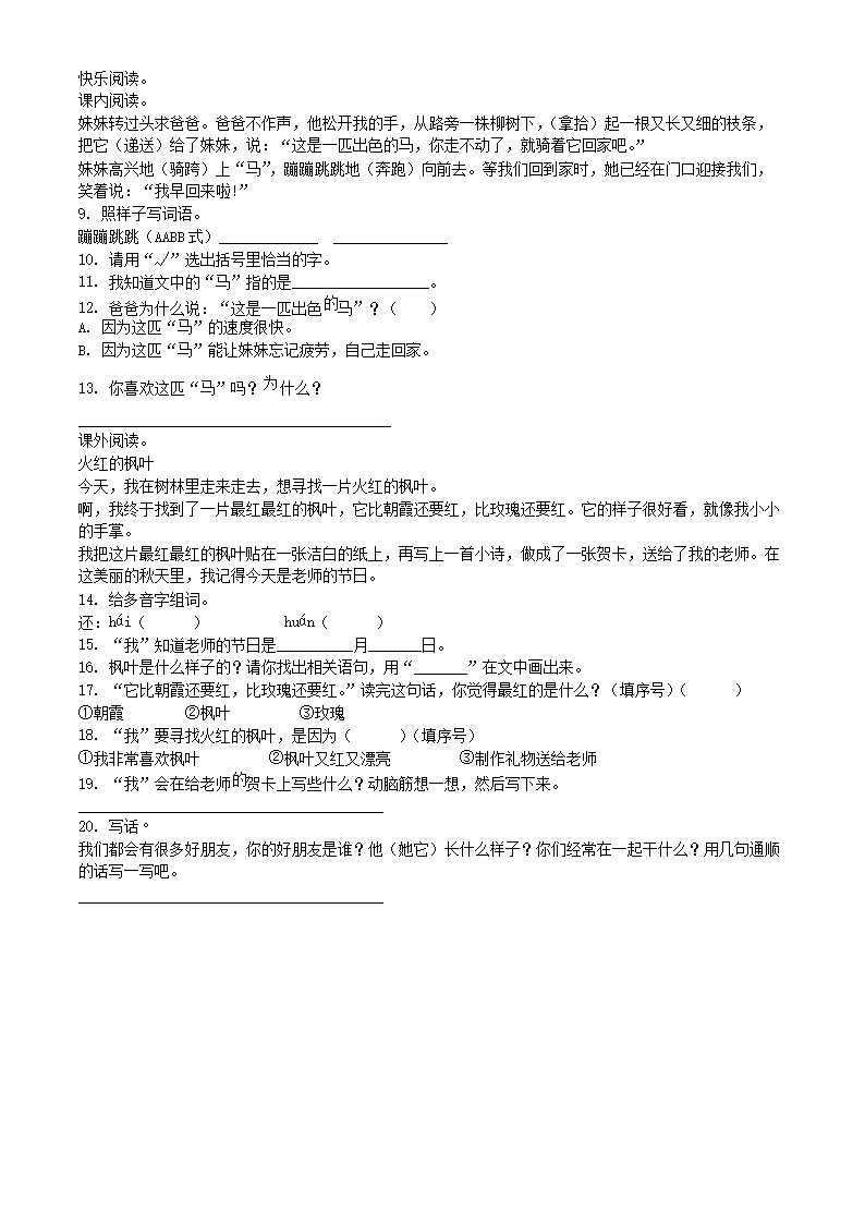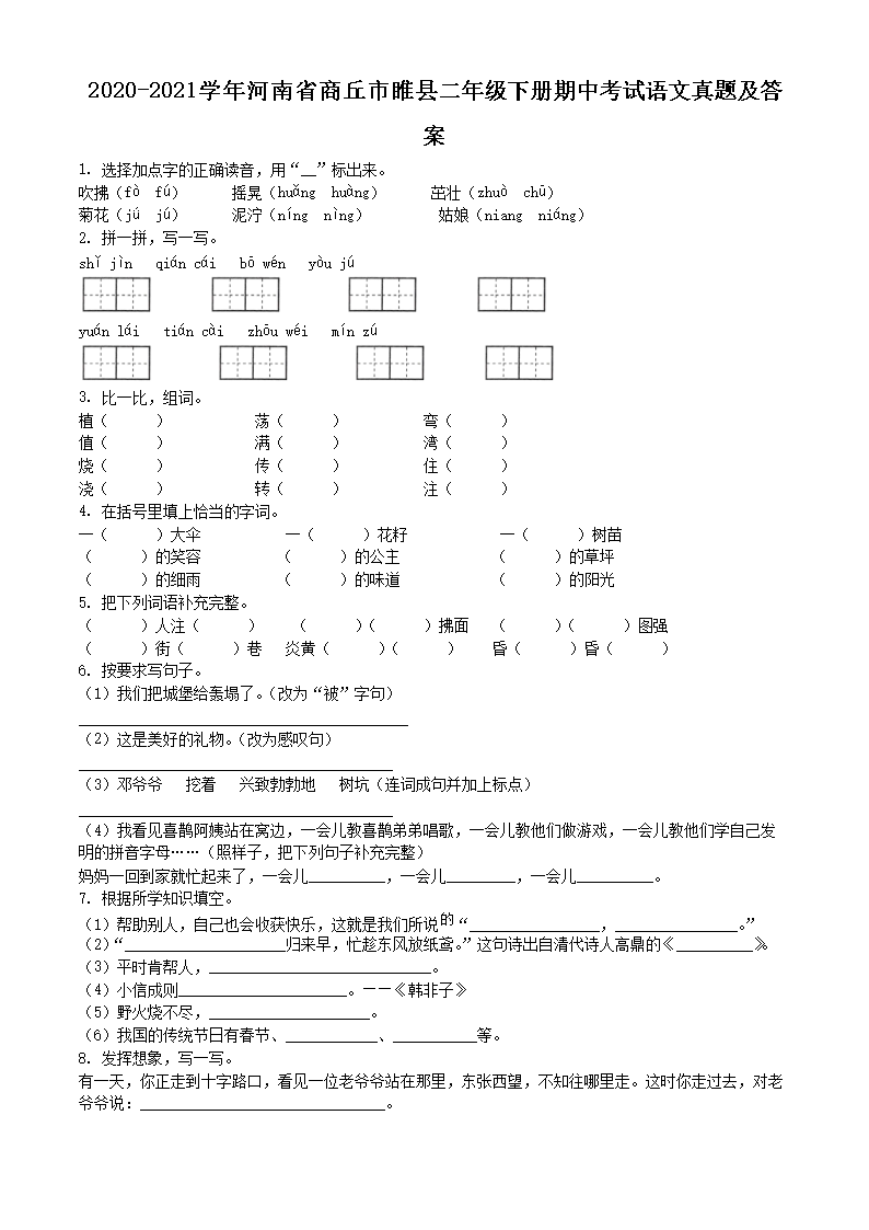 2020-2021学年河南省商丘市睢县二年级下册期中考试语文真题及答案(Word版)09-01