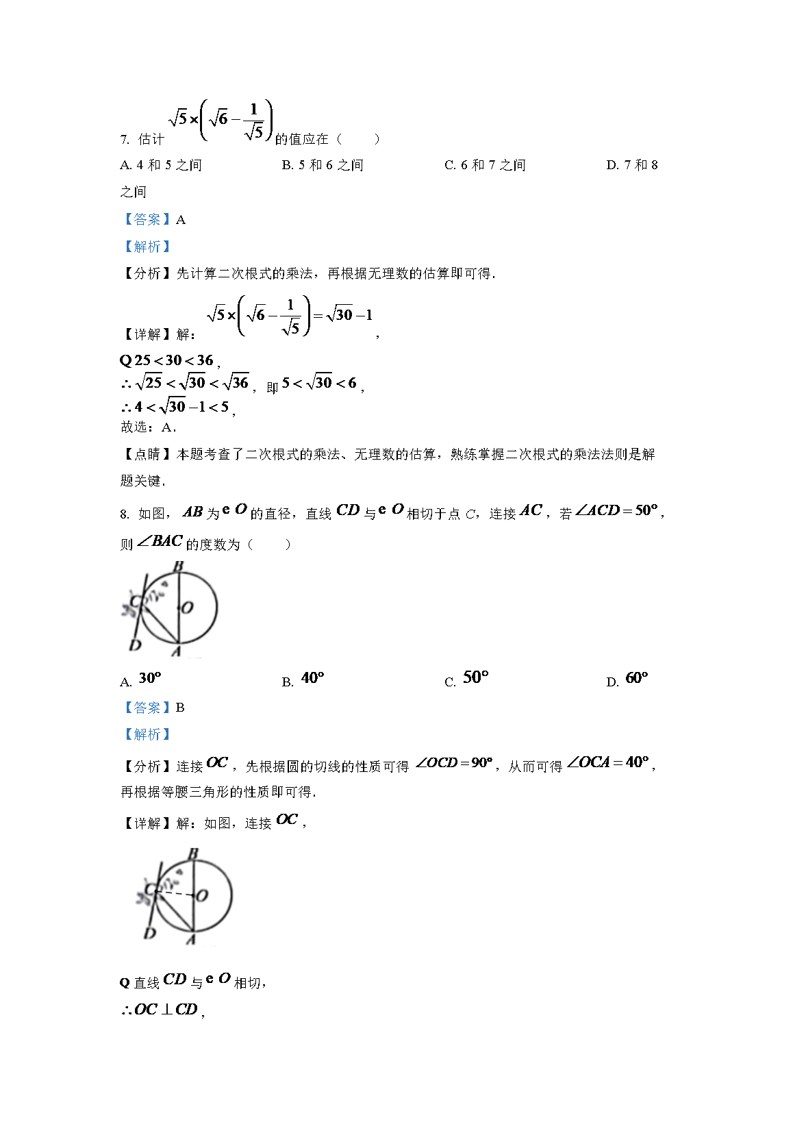 2023年重庆江北中考数学真题及答案(B卷)(Word版)06-17