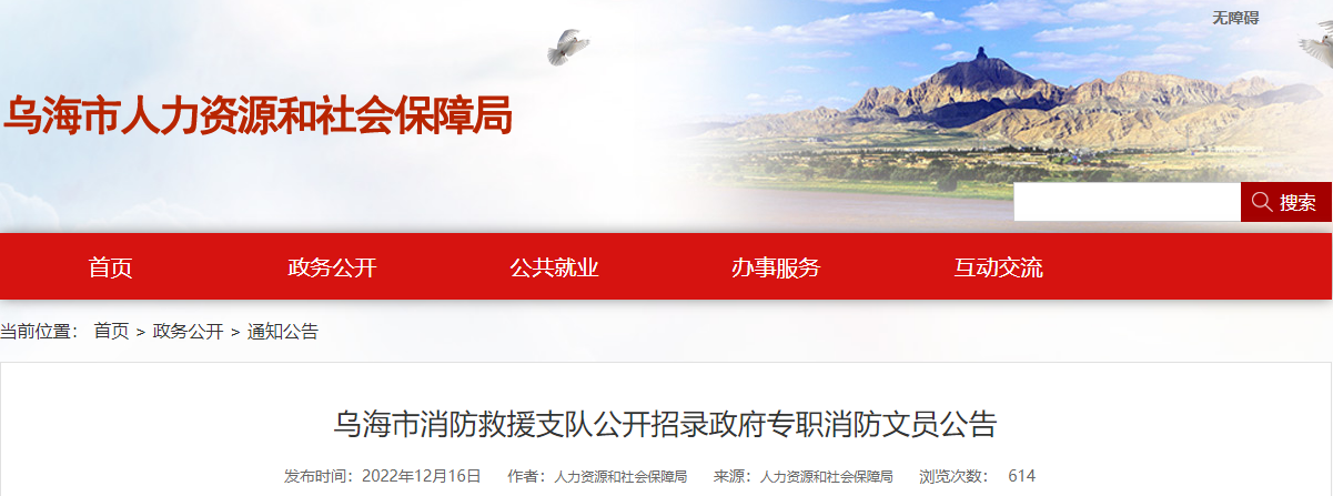 本次招录公告在乌海市消防救援支队微信公众号、内蒙古云智慧考务中心(http://www.nmgkwzx.com/)网站及乌海市公众媒体上进行发布。