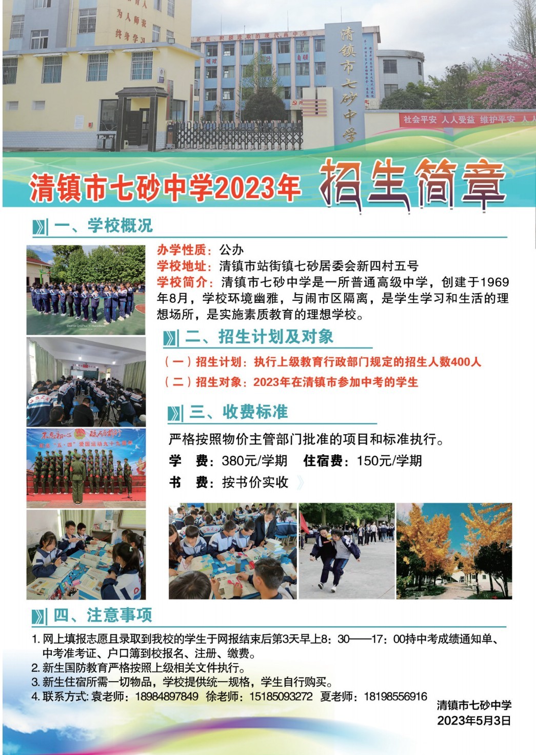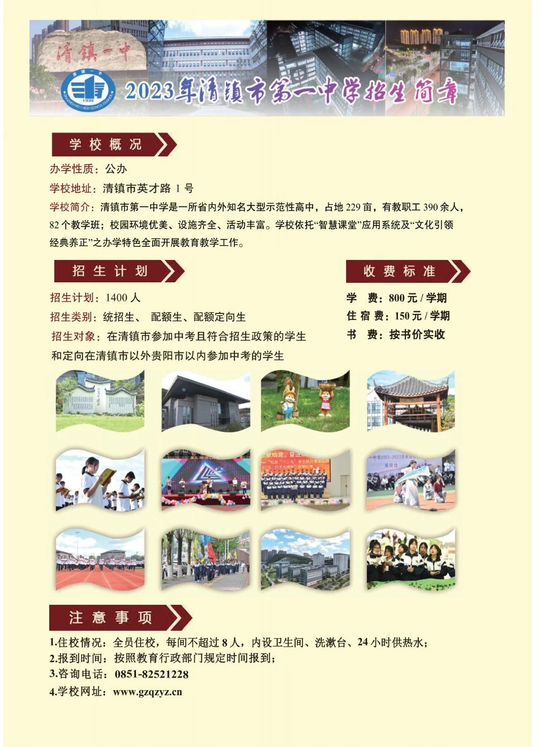 2023年贵州贵阳清镇市第一中学、清镇市第四中学、清镇市七砂中学招生简章07-15
