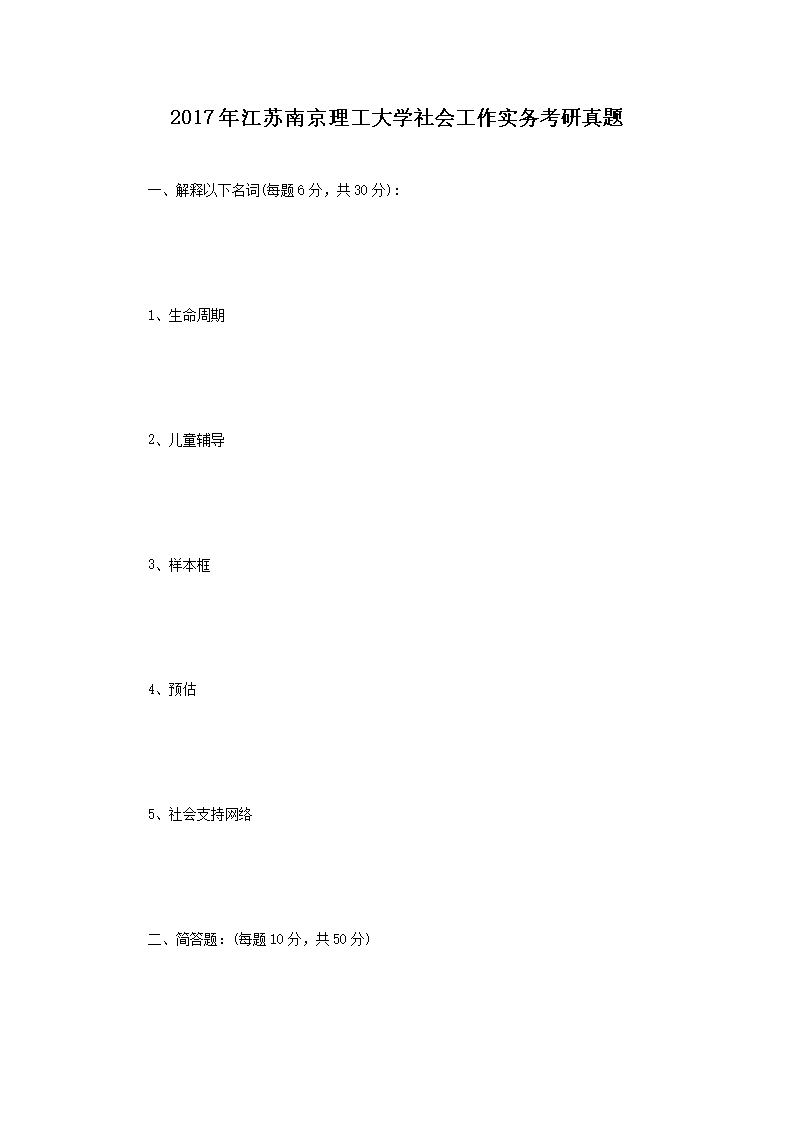 2017年江苏南京理工大学社会工作实务考研真题(Word版)06-28