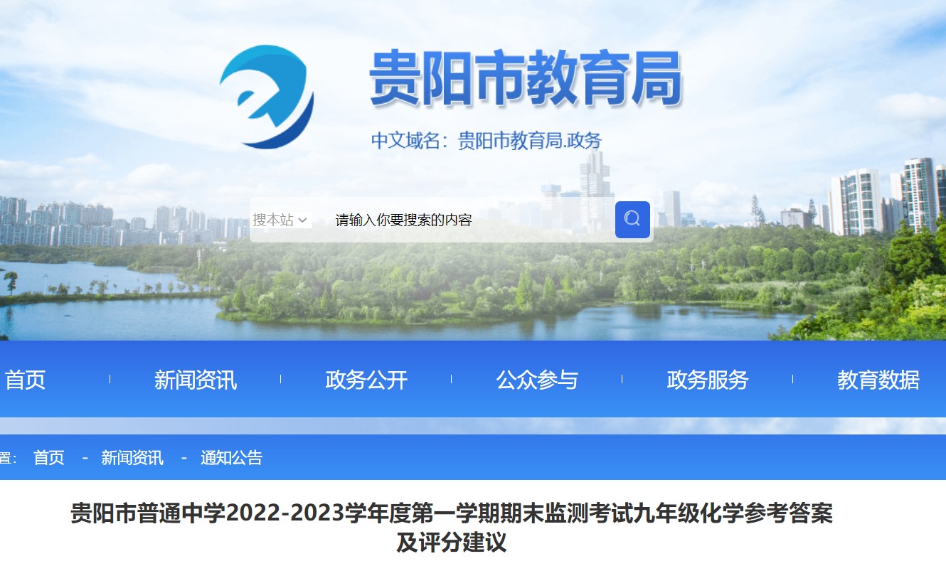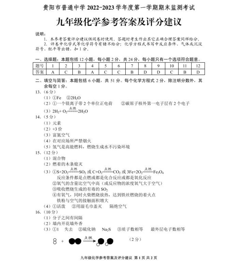 【#初三# 导语】贵州贵阳普通中学2022-2023学年度第一学期期末考试九年级化学参考答案及评分建议已公布,®文档大全网现将公告原文发布如下: