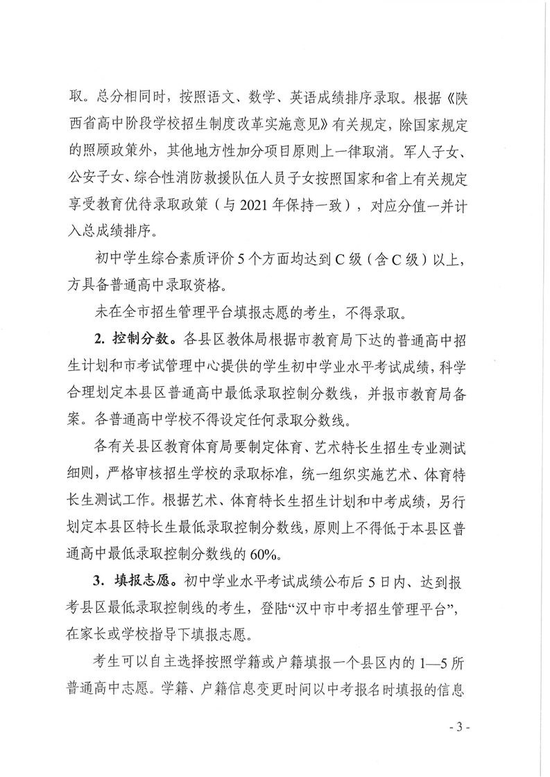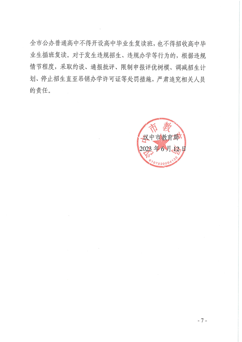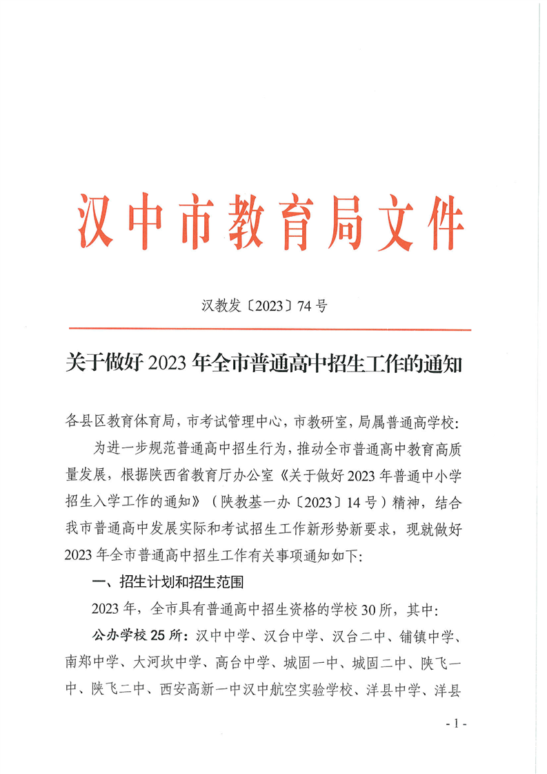 2023年陕西汉中市普通高中招生工作的通知06-29