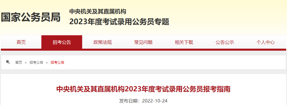 原文标题:中央机关及其直属机构2023年度考试录用公务员报考指南