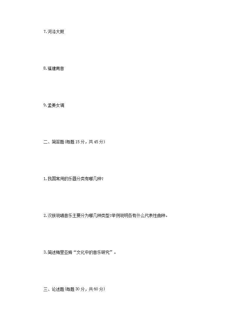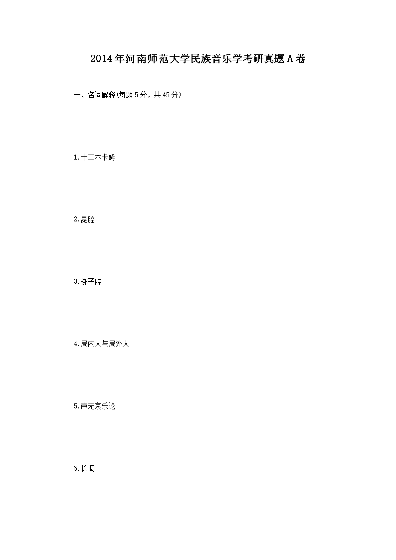 2014年河南师范大学民族音乐学考研真题A卷(Word版)06-06