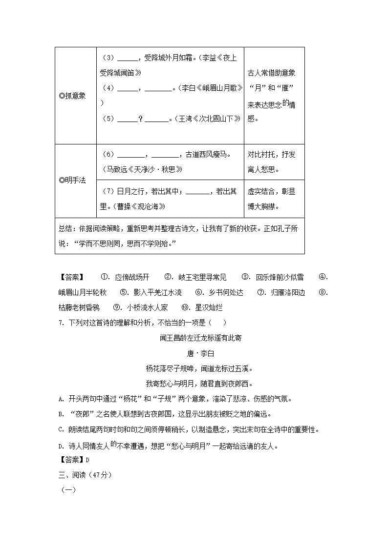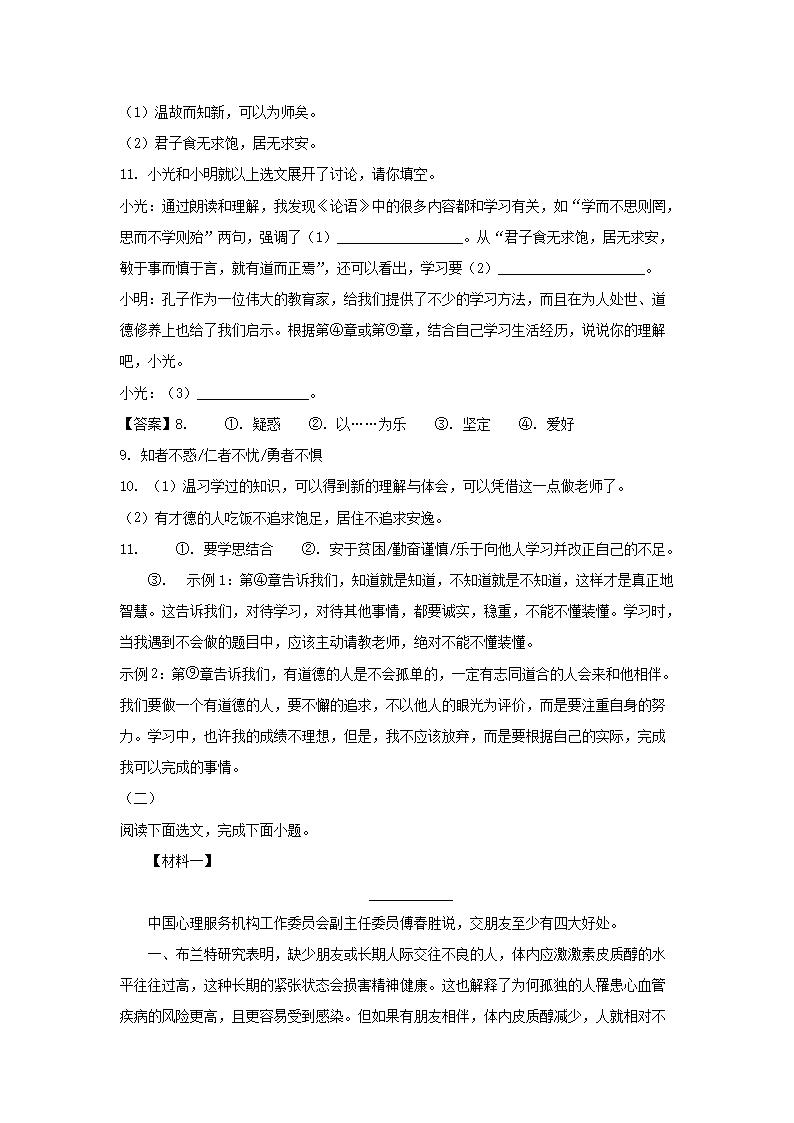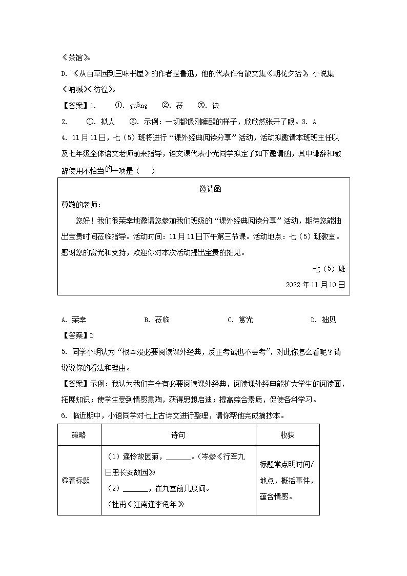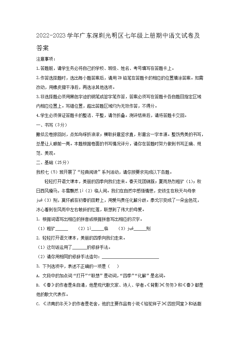 2022-2023学年广东深圳光明区七年级上册期中语文试卷及答案(Word版)09-27