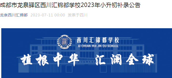 四川成都市龙泉驿区西川汇锦都学校2023年小升初补录公告(补录报名时间7月12日)07-12